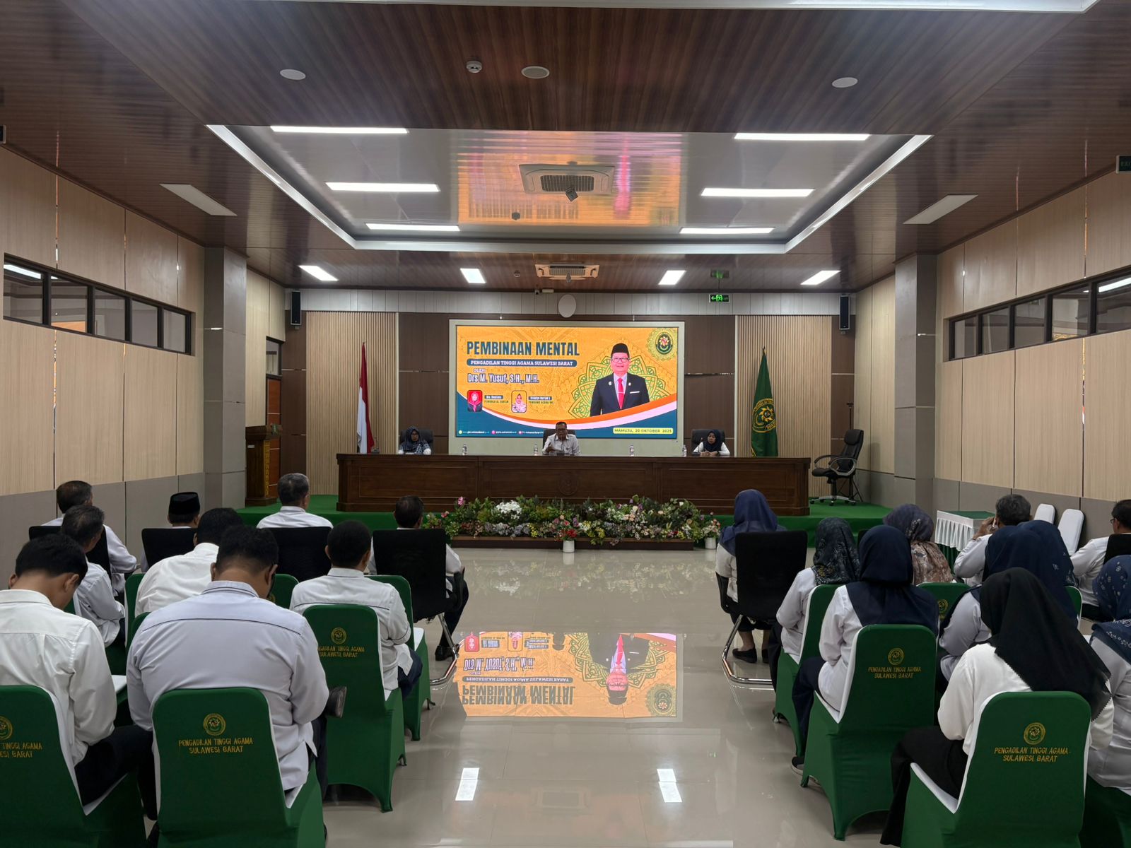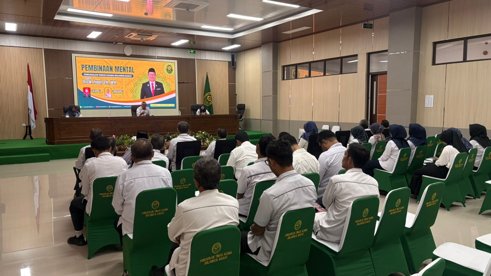 Mamuju, 20 Oktober 2025 — Pengadilan Tinggi Agama (PTA) Sulawesi Barat menggelar kegiatan pembinaan mental pada Senin pagi, bertempat di Ruang Aula PTA Sulbar, dan dipimpin oleh Wakil Ketua PTA Sulbar, Drs M. Yusuf, S.H., M.H.