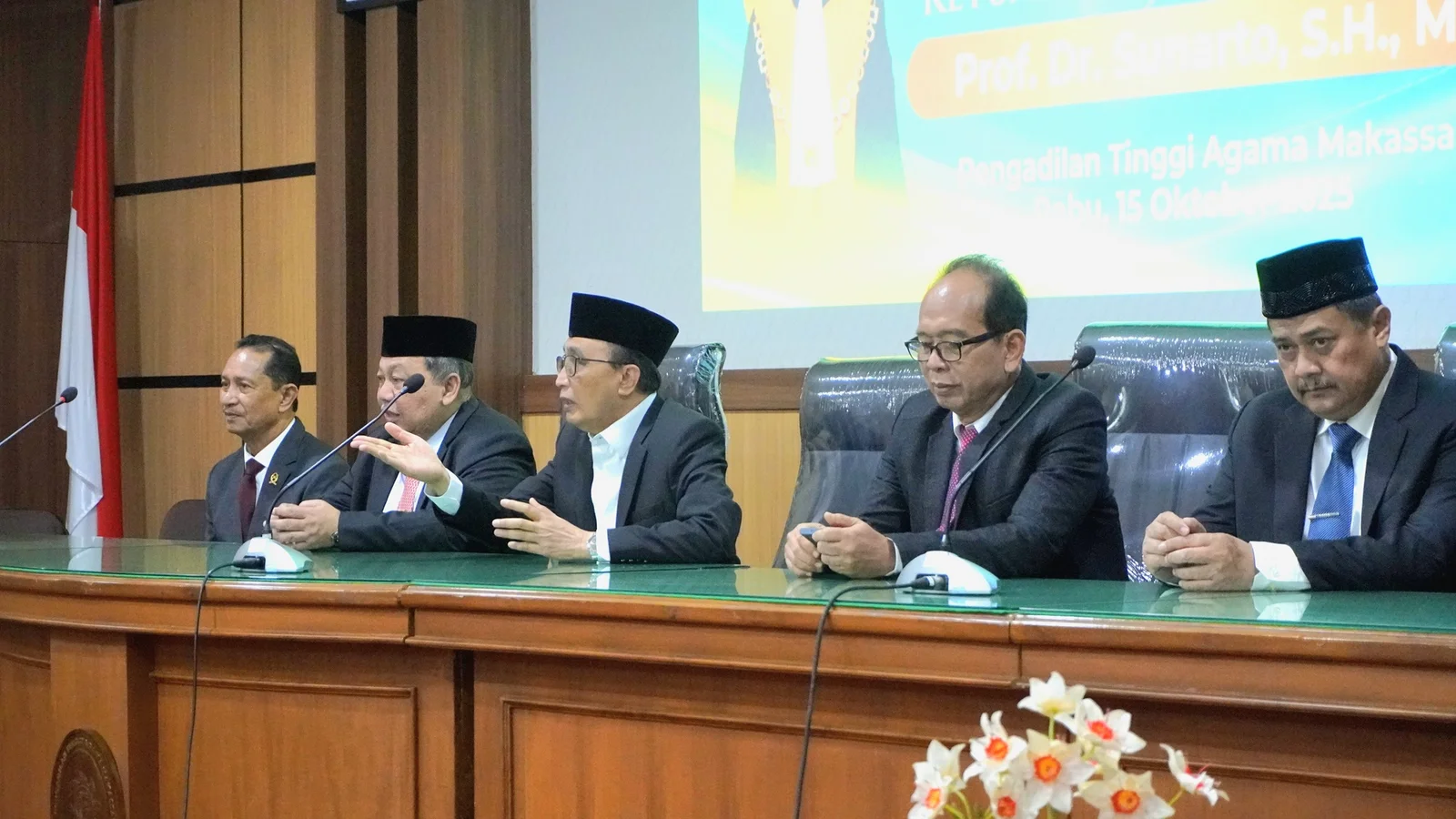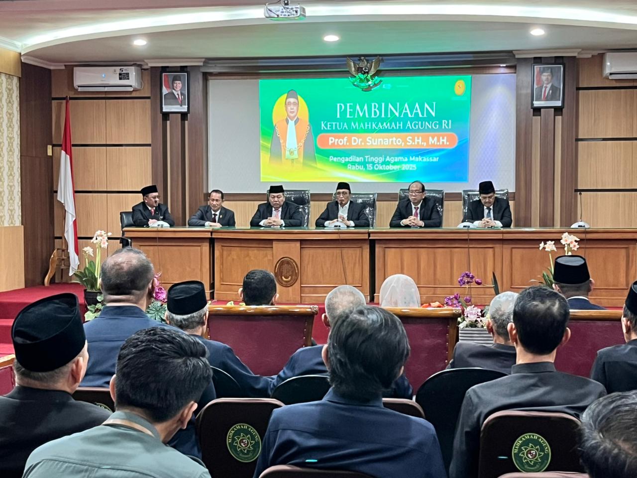 Makassar, 15 Oktober 2025 – Bertempat di Pengadilan Tinggi Agama (PTA) Makassar, Ketua Mahkamah Agung RI, YM Prof. Dr. Sunarto, S.H., M.H., menggelar acara pembinaan pada Rabu (15/10/2025). Kegiatan ini dihadiri oleh para hakim tinggi, hakim tingkat pertama, serta seluruh aparatur peradilan di lingkungan PTA Makassar.